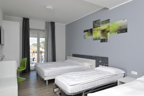 Le Camere Family dell’Hotel Benacus a Malcesine si trovano al secondo piano, pensate per le famiglie che non vogliono rinunciare alla comodità anche in vacanza. Dotate di climatizzatore, spaziose (20/22 mq) sono state completamente rinnovate. A disposizione degli ospiti serviti privati con doccia e bidet, asciugacapelli, camera con balcone vista lago al secondo piano, Wi-Fi, Smart TV da 43 pollici, cassaforte elettronica e bollitore e set cortesia caffè e tè. Per completare la dotazione della camera un piccolo frigorifero per ogni evenienza, pavimento in parquet e prodotti per da bagno in omaggio. Durante le belle giornate di sole, è possibile giocare nel parco giochi dell'hotel o nuotare nella piscina all'aperto (dotata di zona sicura per i bambini con lettini prendisole).